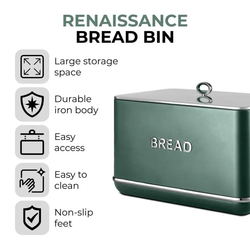 Brand New Tower Renaissance Forest Green Bread Bin & Tea, Coffee & Sugar Canisters Set. Beautiful Matching Stylish Design Kitchen Storage Set in Forest Green