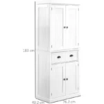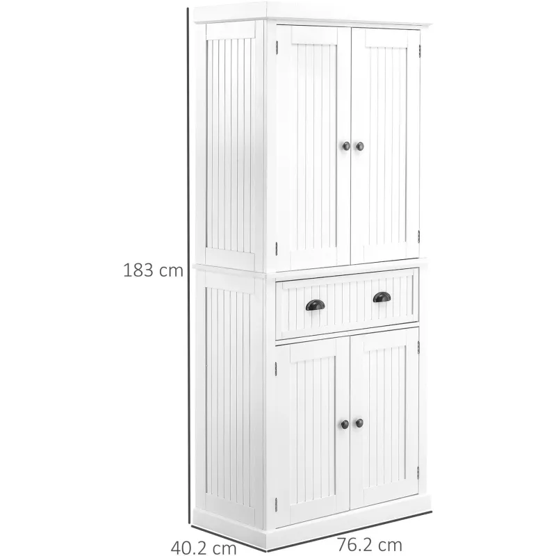 This HOMCOM tall storage cabinet is an ideal solution for any kitchen. Made from MDF with reinforced backboards, it is ideal for storing all your kitchen items from accessories, utensils, dry good and even your cookbooks. The kitchen larder cupboard has 4 doors with 3 adjustable shelves for you to position as required. The door handles and knobs are having a brushed nickel finish, giving the unit elegance and style. This is a great unit to have to match any room décor.