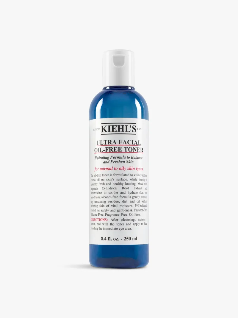 Kiehl’s Ultra Facial Oil-Free Toner is formulated to visibly reduce excess oil on the skin’s surface, while leaving it looking instantly fresh and healthy. Made with imperata cylindrica root extract and antarcticine to soothe and hydrate your skin, this non-drying, alcohol-free formula gently removes any remaining residue, impurities and oil without stripping skin of vital moisture.