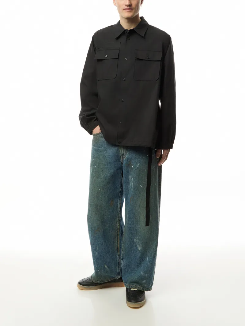 Classic button-down shirt in a crisp cotton-nylon blend inspired by military uniforms. Cinch the bungee cord in the hem for a puffed bomber shape.