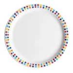 Melamine is a strong, lightweight and hard, thermosetting plastic which is an ideal hygienic and durable alternative to china. These dinner plates by Carlisle feature a white body with a multi-coloured mosaic effect around the rim; they are perfect for meeting the tough demands of everyday use in schools, hospitals and care homes.