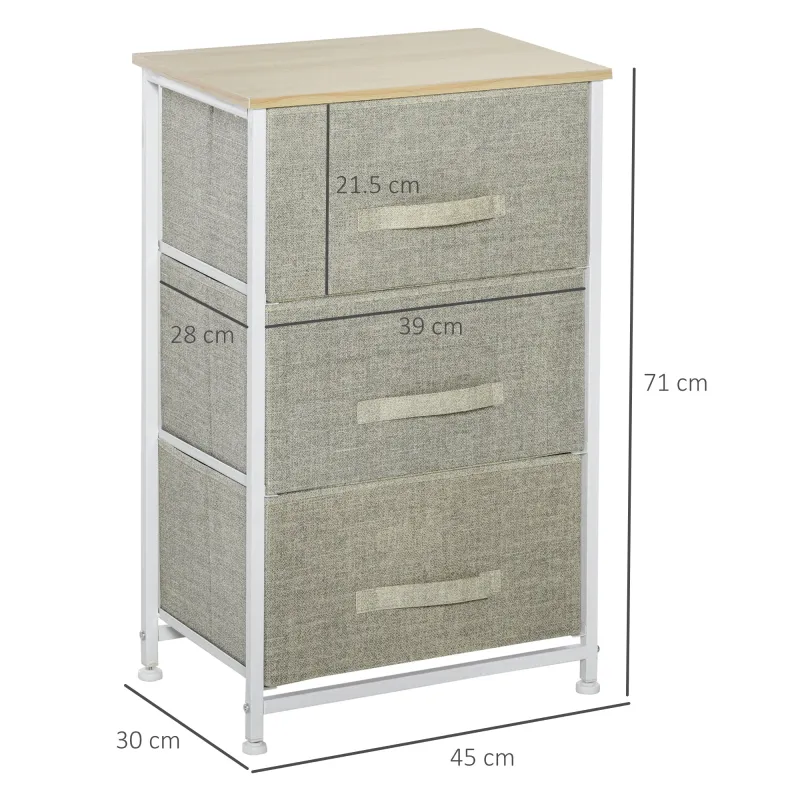 The simplicity of this three-drawer unit from HOMCOM means it will welcome itself into your home with ease. The light grey and white colourway, in a classic sharp shape, works great all over the home – from the bedroom, to the hallway, living room and beyond. With a powder-coated steel frame for strength, it is fitted with three thick linen drawers for storage. It’s finished with handles on the drawers to open them easily.