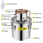 Home other VEVOR Moonshine Still Distiller 3Gal 12L Stainless Steel Water Distiller Copper Tube Home Brewing Kit Build-in Thermometer for DIY Whisky Wine Brandy Sliver