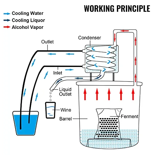 • Versatile Application: There are many ways to use our alcohol still kit. According to your preferences, you can make Whiskey, Wine, Brandy, Rum, Tequila, Vodka, Water Distiller, Ethanol, Essential Oils, etc. The thickened bottom allows various heating methods, including gas stoves, firewood, electric ceramic heaters, etc.