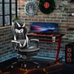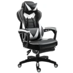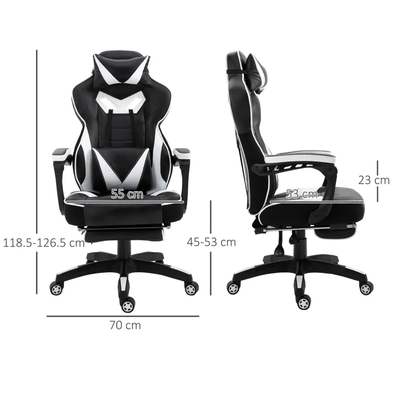 Home Office Chairs Vinsetto Computer Gaming Chair, Racing Desk Chair with Lumbar Support and Footrest, PU Leather Gamer Chair with Headrest and Swivel Wheels for Home, White