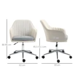 Work in comfort and style with this office chair from Vinsetto. A versatile design which is suitable for both the home and office. Its ergonomic features include a large seat with padding, thick cushion and high back and armrests, keeping you comfortable as you work. The height is adjustable and the seat swivels for extra freedom. It’s finished with wheels on the base.Features:Linen-feel fabric is breathable and comfortableAdjustable height to work at a suitable level to your desk, powered by under-seat leverSwivel wheels and seat to move around freely and easilyHigh back and arms to support your bodyGreat for both home and office spacesMaximum load 120kg, assembly requiredSpecification:Color:BeigeMaterial: Sponge, Steel, Nylon, Linen(polyester)Overall Dimension: 61W x 59D x 86-96H cmSeat Dimension: 46W x 45D x 45.5-55.5H cmBack Height: 41cmMax Load: 120kgItem Label: 921-386V70BG1 x Chair1 x Manual