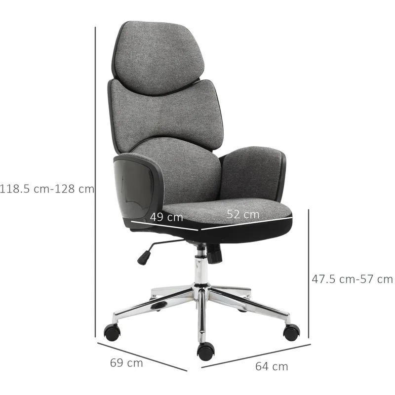 Vinsetto Padded Linen Ergonomic Home Office Chair w/ Wheels Grey