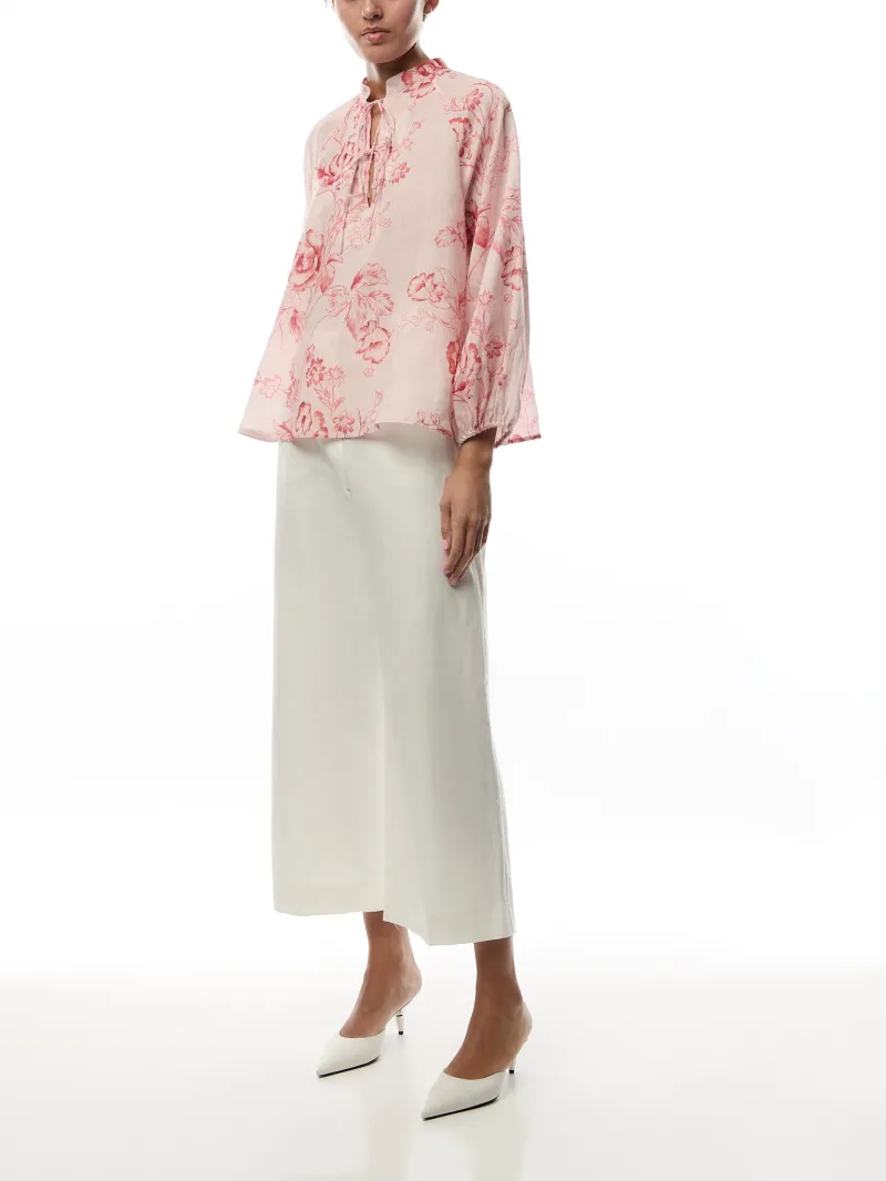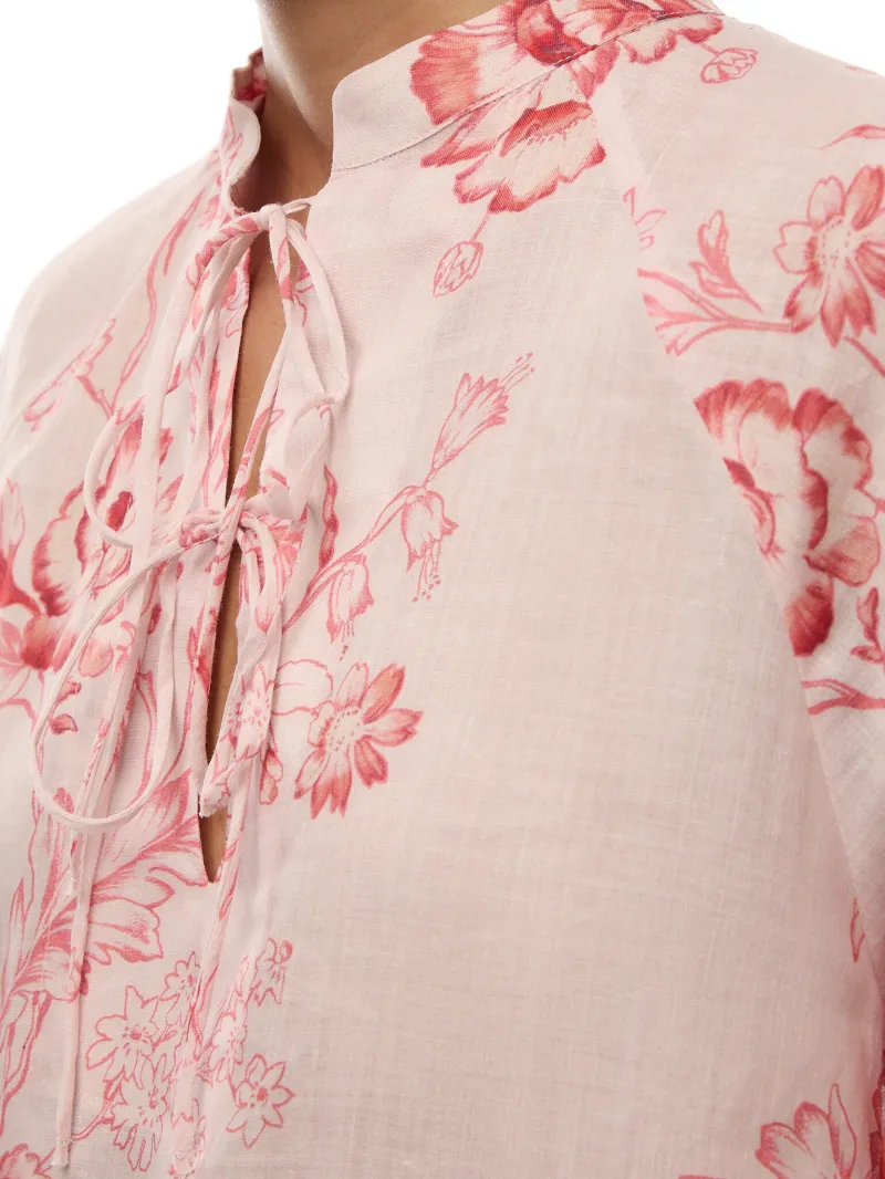 Viterbo Long Sleeve Tie Neck Top Pink Floral Print