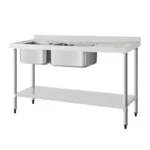 Functional and versatile, the 1500mm wide double bowl sink with right hand drainer from Vogue is ideal for the busy professional kitchen, allowing you to soak or rinse dishes in one sink whilst cleaning in the other.