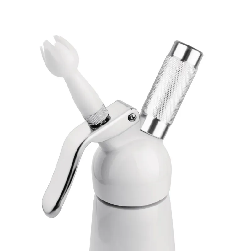 A cream whipper for sauces and cream. Comes with three dispensing nozzles to allow for a variety of decorative effects and presentation.