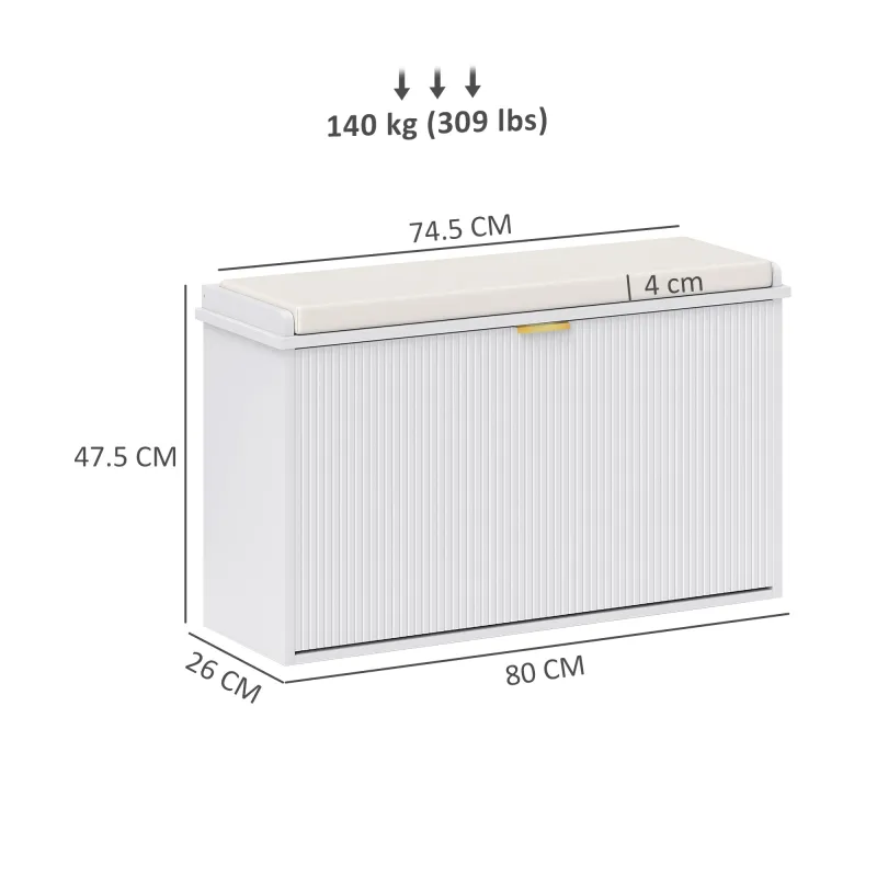 Upgrade your entryway with the HOMCOM Hallway Shoe Storage Bench – a perfect blend of elegance and functionality. Featuring a ridged front, exquisite metal tab handles, and a soft padded cushion seat, this piece is designed to keep your home looking neat while providing a comfortable place to sit when changing footwear.