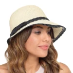 Home Clothing & Footwear > Womens Accessories > Hats Womens Cloche Hat Braid Trim Bow Paper Straw Summer Beach