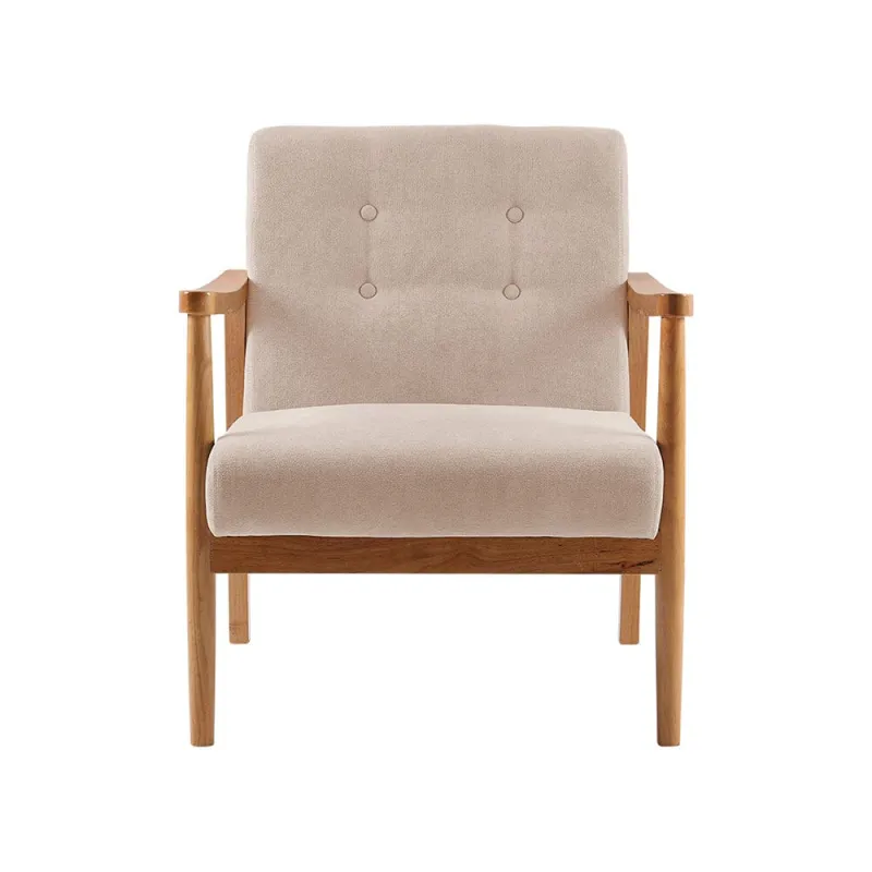 Anytime would be a good time to snuggle comfortably on our Livingandhome modern armchair! Clean lines and generous with space, regardless if you are going to read, play a game or just relax in it. With a scientific slanted design, you are unlikely to get tired from long-time seating. Besides, this armchair also has mild curved armrests for comfortable enjoyment. Moreover, the strong rubberwood frame makes this armchair built to last and the breathable fabric is used to adapt to all seasons.