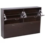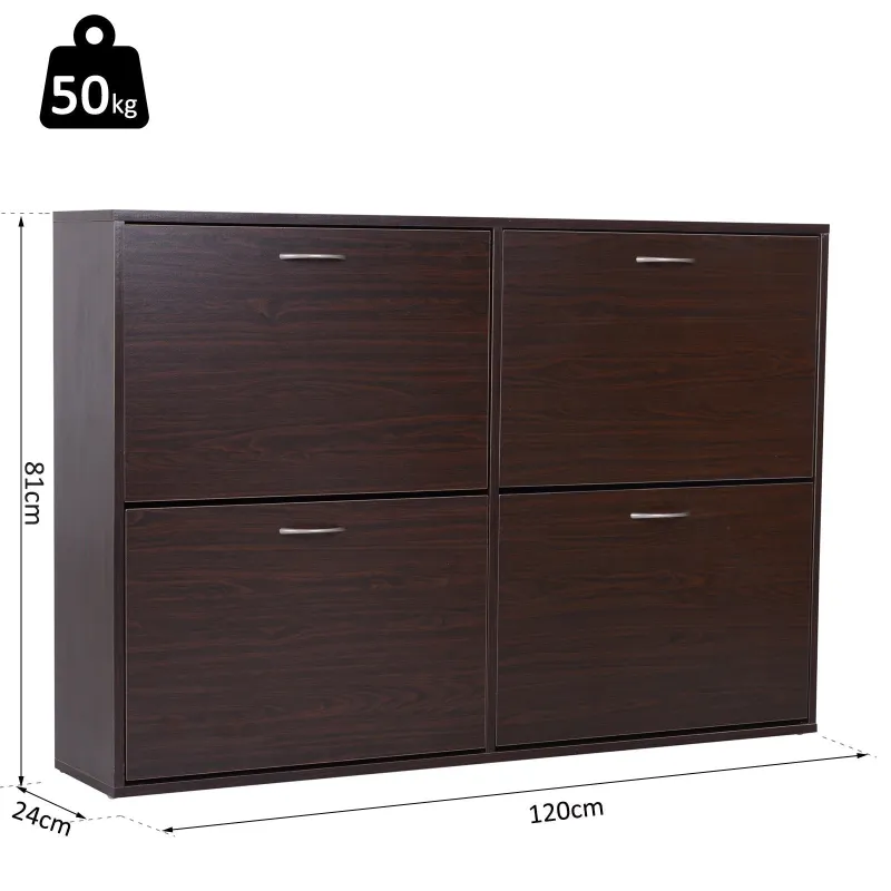 Wooden Modern Design 4 Drawer Shoes Cabinet Pull Down Shelf Storage Organiser Entrance Hallway Furniture – Dark Brown