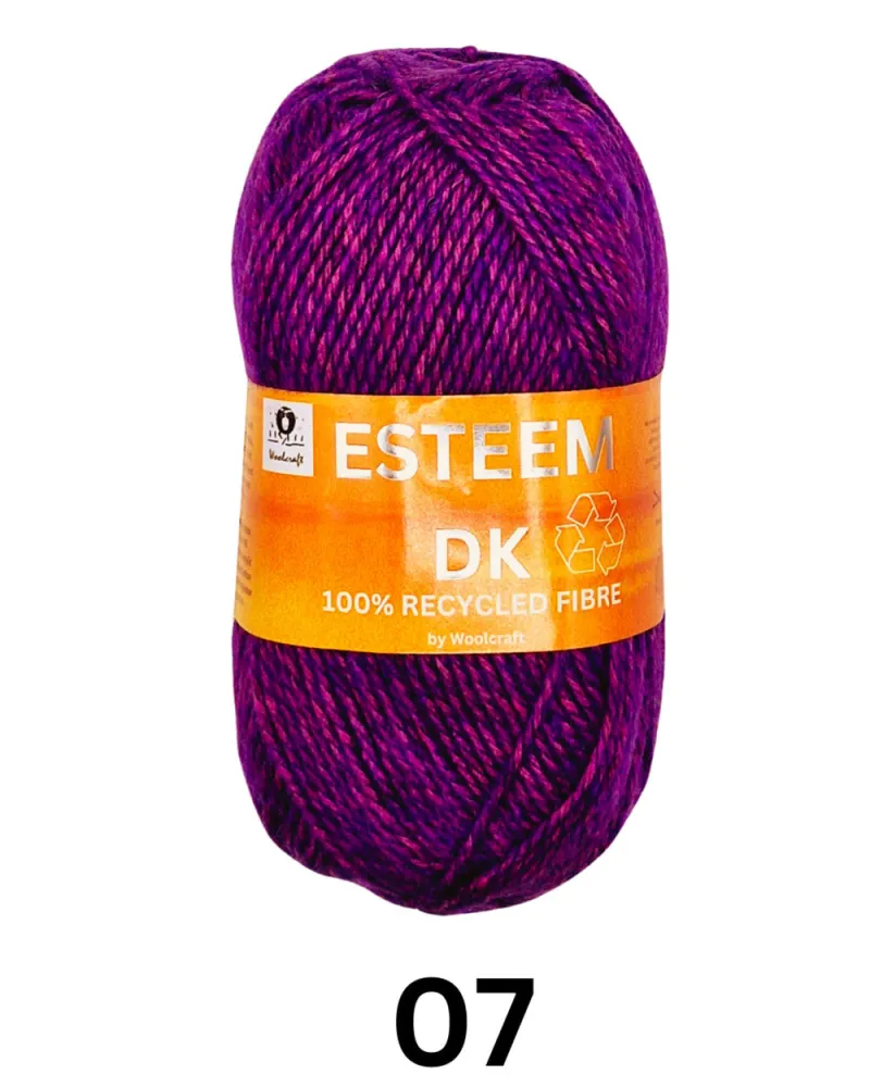 Elevate your knitting and crocheting game with Woolcraft Esteem Recycled Wool Yarn DK 07 in deep purple. This eco-friendly yarn adds a touch of luxury to any project, making it a must-have for artisans who desire elegant, one-of-a-kind pieces.