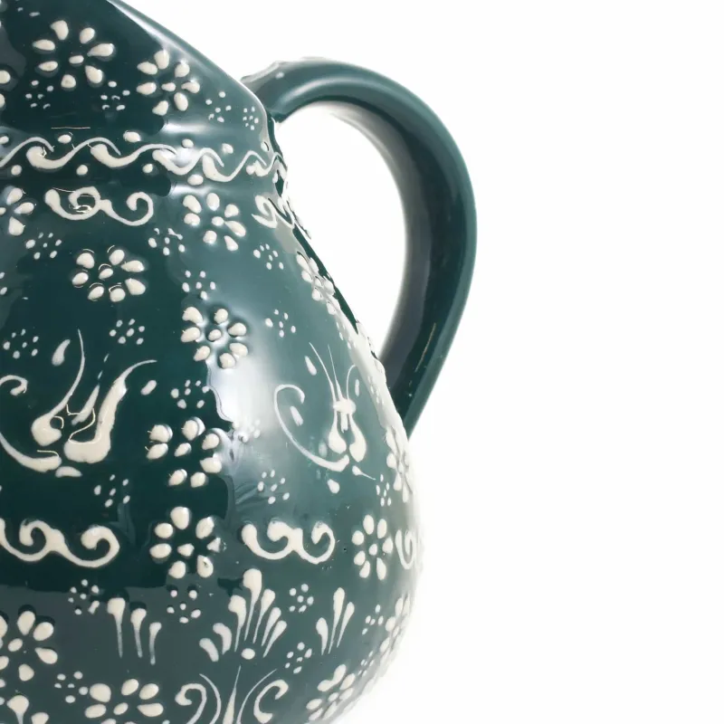 This beautiful, dark green jug is handmade in Turkey. It has a rounded body, narrow base and curved handle. It’s ideal for parties and family feasts.