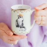 Yvonne Ellen presents the Medium Mug in Cat design, from her ‘Best of British’ collection. Yvonne Ellen, a British designer, brings a touch of elegance and charm to her bone china mugs with each telling a whimsical tale using animal characters and playful slogans. Each piece is tastefully decorated with colourful charm and royal-style gold accents. A lovely, cheerful way to add a touch of British elegance to your home.