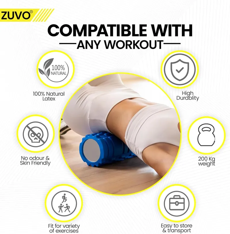 Zuvo Lightweight Foam Roller for Muscle Pain Relief, Massage Roller and Back Roller, Blue